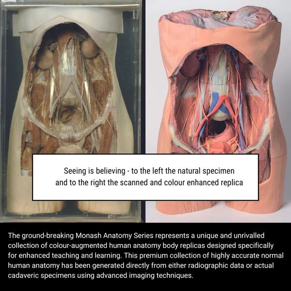 Monash Anatomy Series represents an unique and unrivalled collection of colour-augmented human anatomy body replicas designed specifically for enhanced teaching and learning. This premium collection of highly accurate normal human anatomy has been generated directly from either radiographic data or actual cadaveric specimens using advanced imaging techniques.