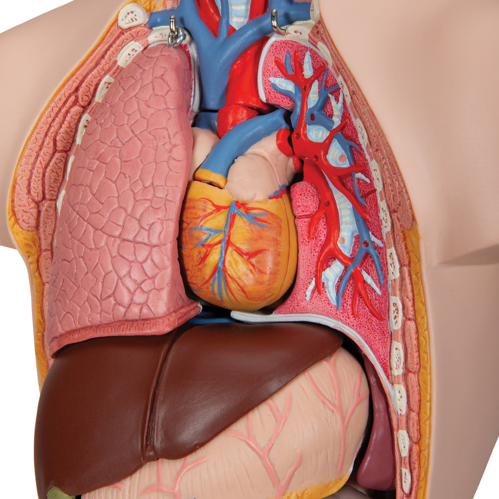This human mini torso is approximately half life-size. Even small hands can quickly disassemble and assemble this small but detailed torso. This high quality mini replica of human anatomy has the following removable parts and organs: